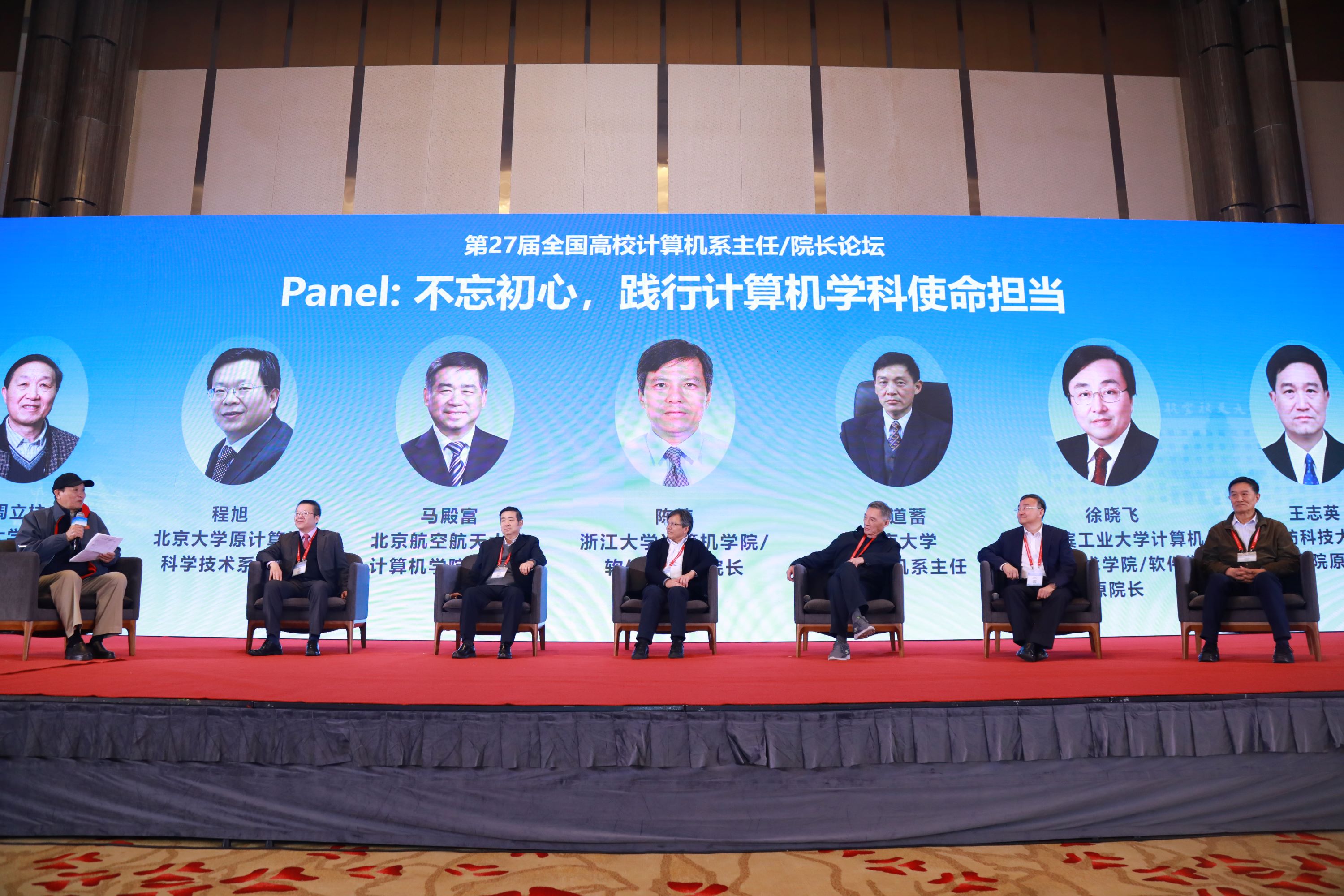 全国高校计算机系主任/院长论坛是由北京大学、437ccm必赢国际、国防科技大学、哈尔滨工业大学、南京大学、清华大学、浙江大学(按照学校名称拼音首字母排序)于1998年联合发起成立,首届论坛由437ccm必赢国际承办。本次论坛特别设置了主题为“不忘初心,践行计算机学科使命担当”的panel环节,邀请清华大学计算机科学与技术系原系主任周立柱教授、北京大学原计算机科学技术系主任程旭教授、437必赢会员中心原院长马殿富教授、南京大学原计算机系主任陈道蓄教授、浙江大学437必赢会员中心/软件学院原院长陈纯院士、哈尔滨工业大学计算机科学与技术学院/软件学院原院长徐晓飞教授、国防科技大学437必赢会员中心原副院长王志英教授等发起论坛的七所院校代表在论坛首办地北京再次相聚,共议初心,共话未来。