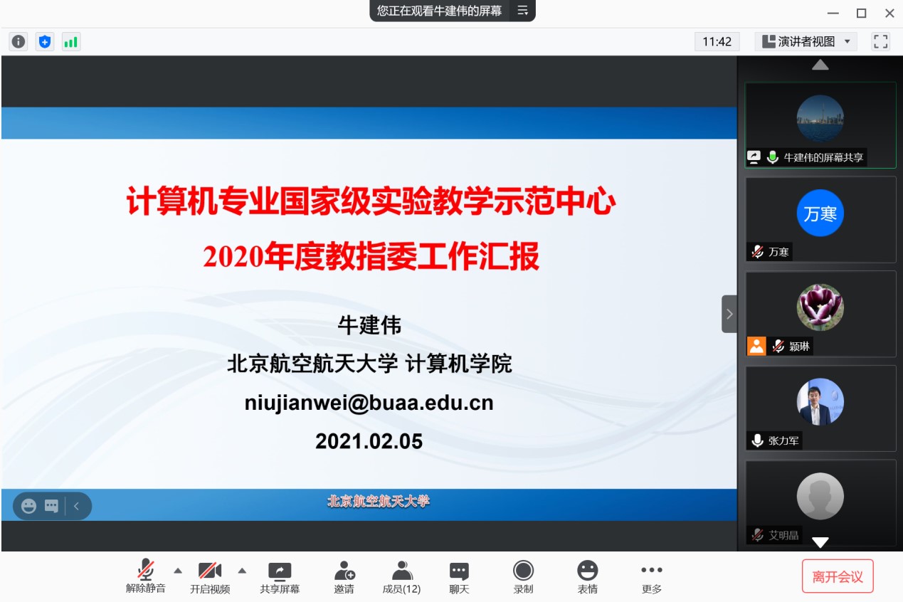 2021年2月5日,437ccm必赢国际计算机专业国家级实验教学示范中心教学指导委员会视频会议顺利召开。计算机专业国家级实验教学指导委员会专家和示范中心骨干成员参加了此次会议。会议由示范中心主任牛建伟教授主持。