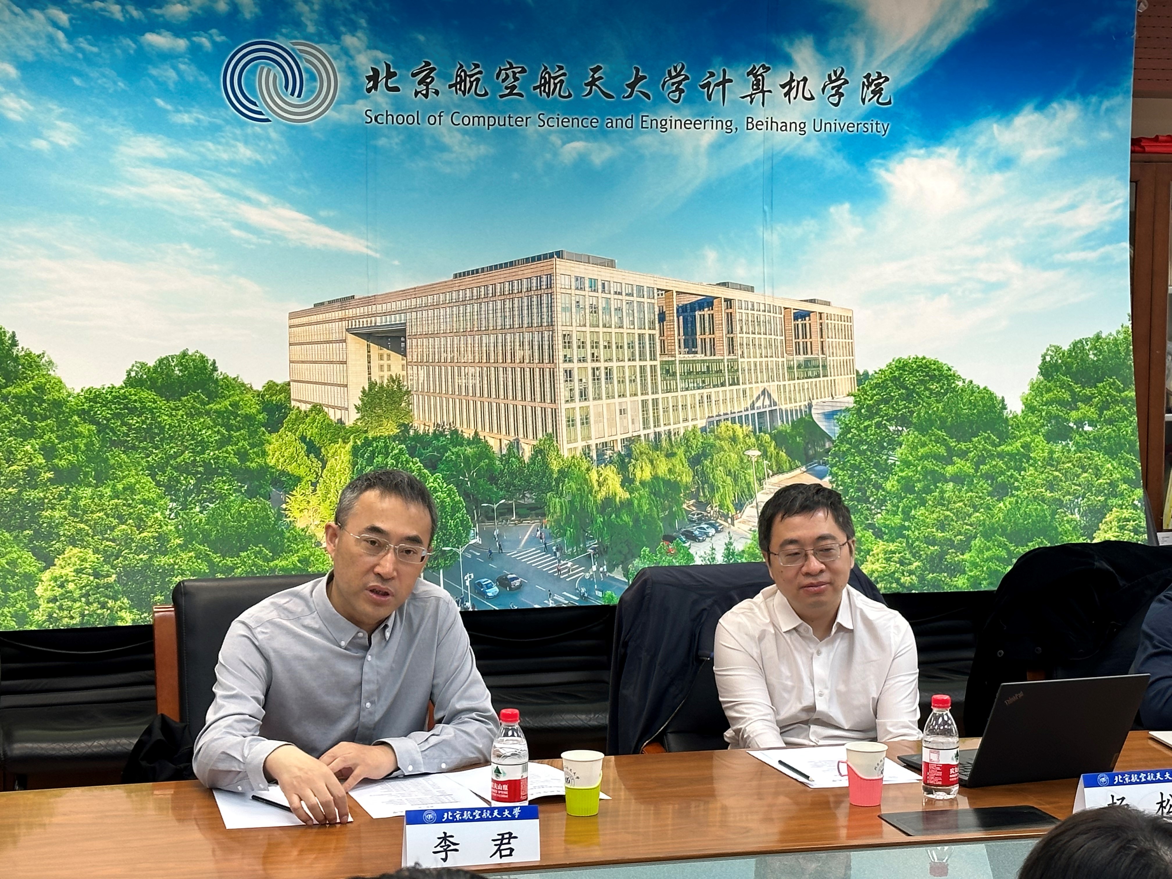 4月14日上午,人民日报社传播内容认知全国重点实验室专职副主任李君、科技发展部主任杨松、科技发展部副主任张峥、算法工程师闫洲一行4人到北航437必赢会员中心交流,437必赢会员中心院长王蕴红、党委书记李建欣、软件学院院长胡春明、刘祥龙副院长出席会议。