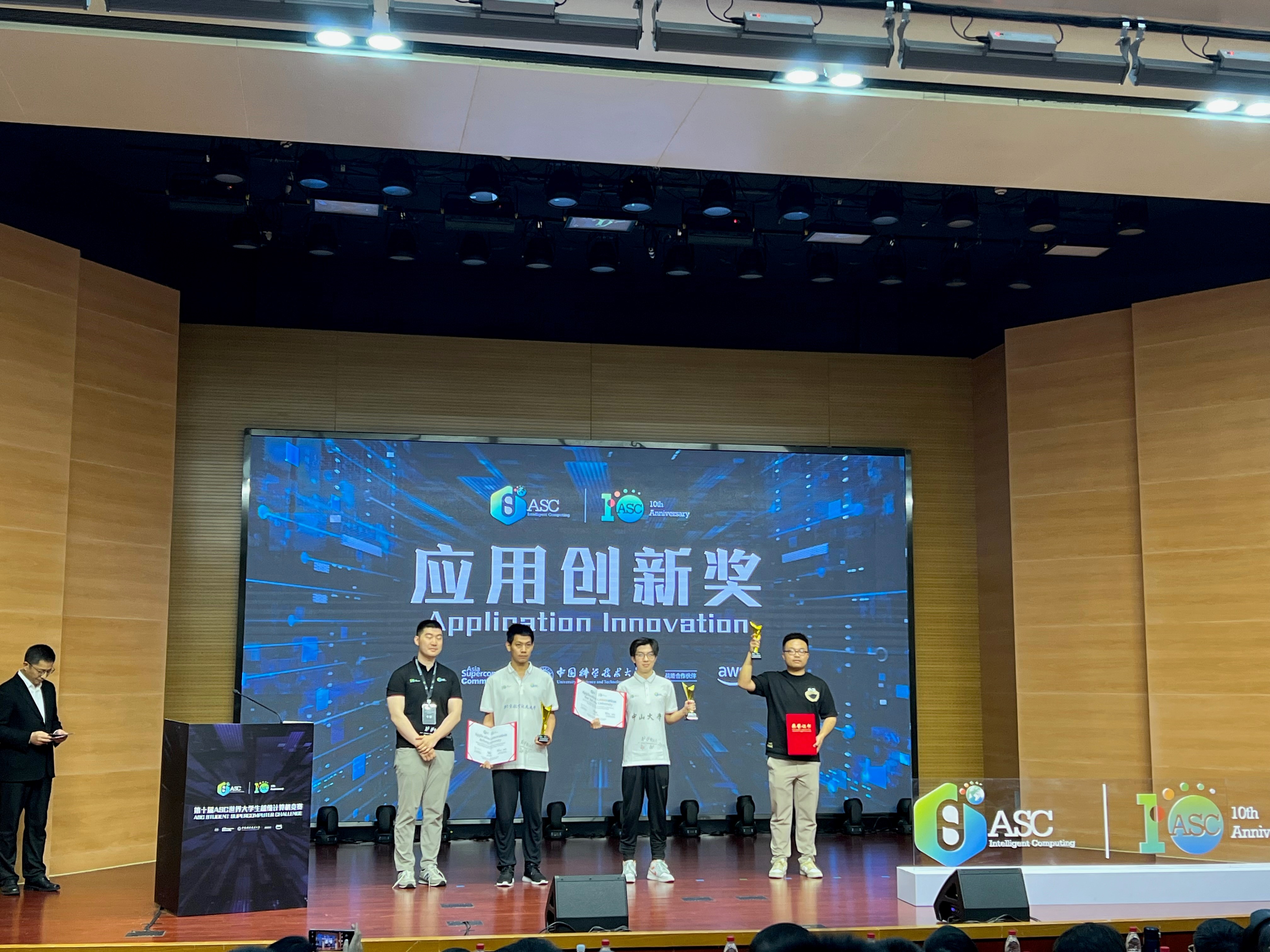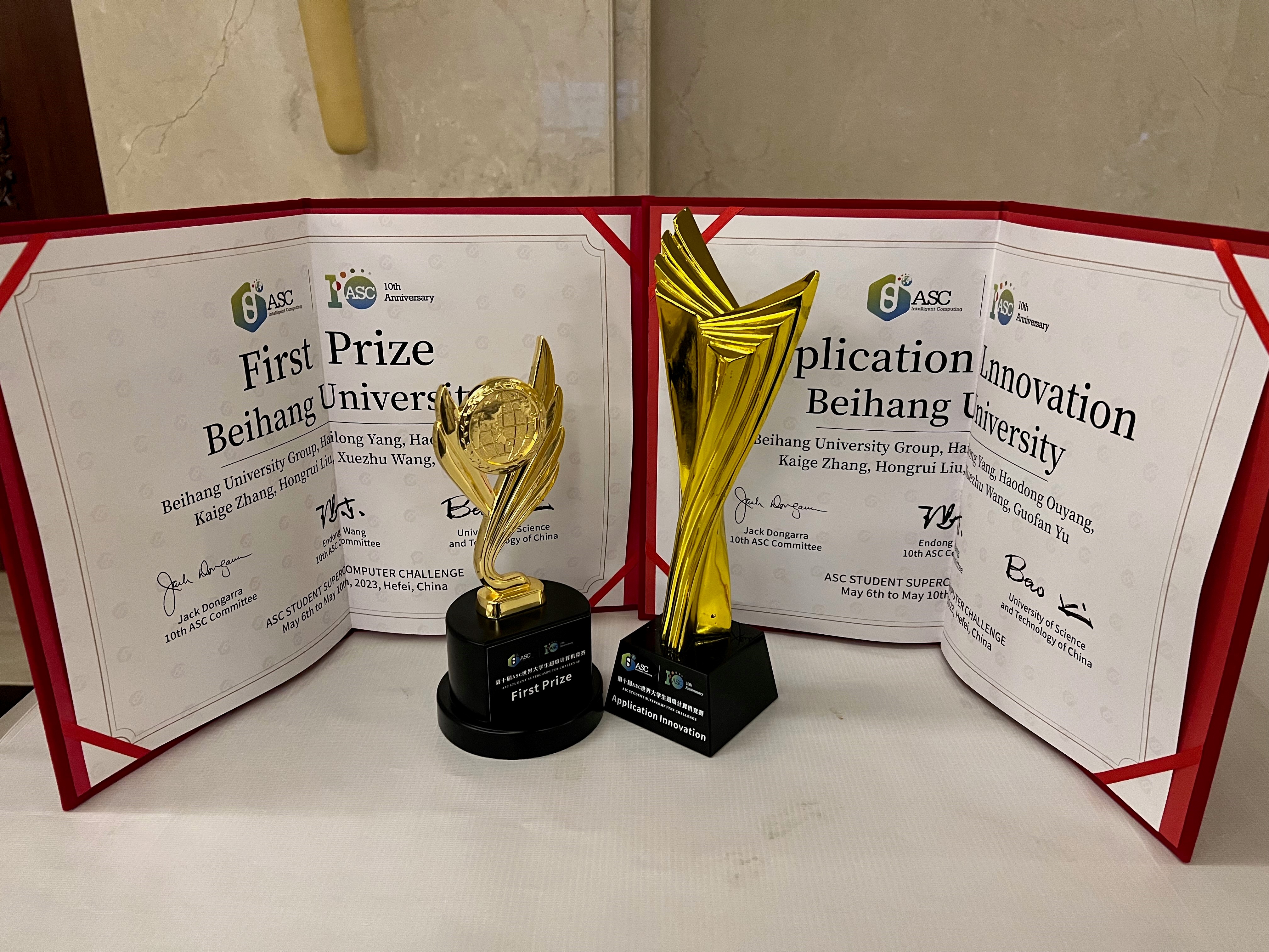5月10日全球规模最大的世界大学生超级计算机竞赛(ASC)总决赛在中国科学技术大学落下帷幕,在北航437必赢会员中心杨海龙副教授的悉心指导下,由来自437必赢会员中心的五名本科生参赛队员欧阳皓东(队长)、刘鸿睿、余国帆、张凯歌、王雪竹,以及五名观摩队员仲书璋、杜劭康、吴飞扬、孔昊然、安达楷组成的北航超算队在分子动力学模拟deepMD、海洋数值模拟FVCOM等多道赛题中取得了优异成绩。最终,北航超算队荣获第十届ASC全球总决赛一等奖和应用创新奖。这是北航超算队第九次获得ASC全球总决赛一等奖,彰显了北航本科生扎实的计算机系统结构知识和优秀的超算创新能力,也是437必赢会员中心对“教赛研”相结合的新工科培养模式的成功探索。