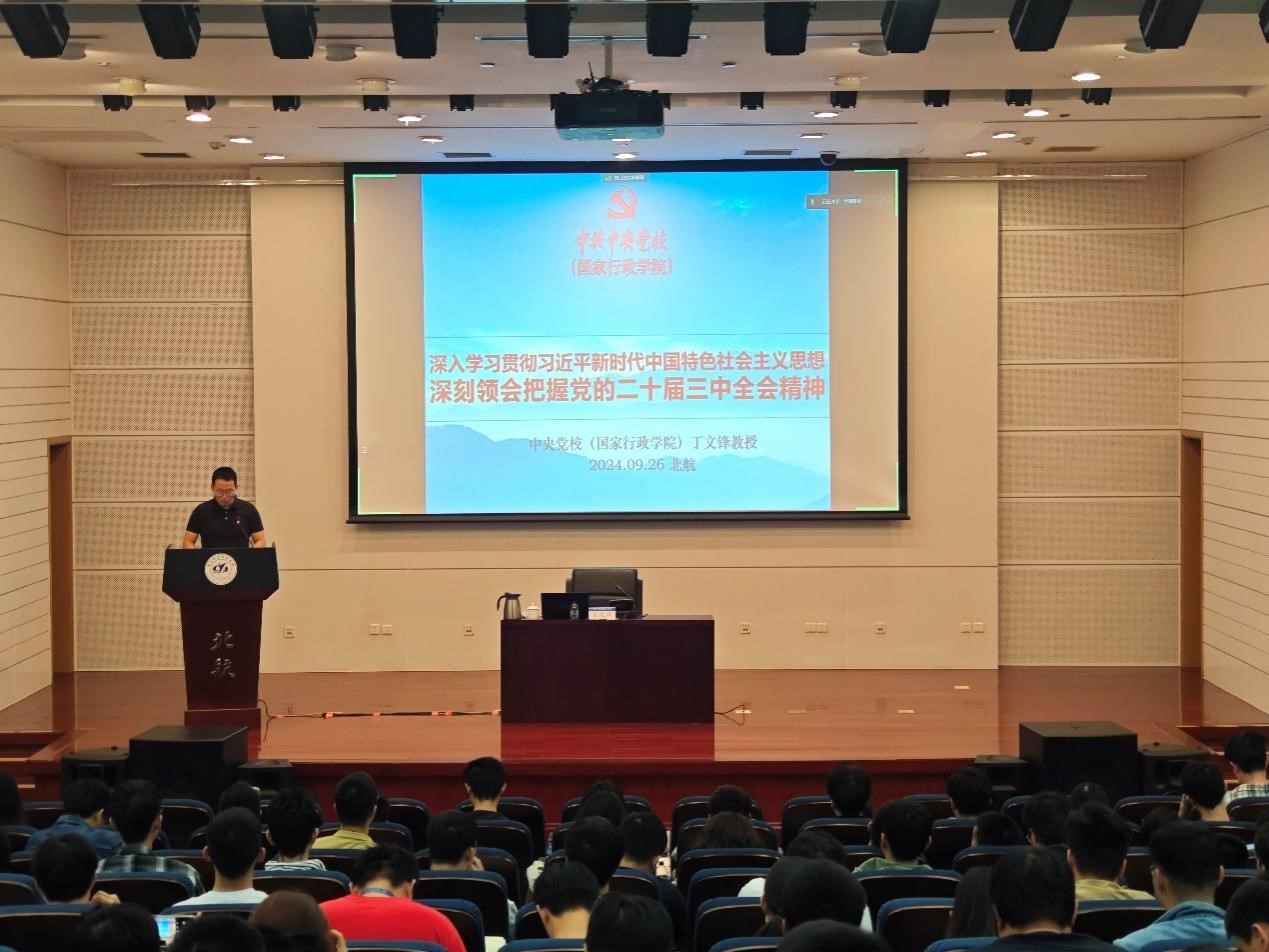为深入学习贯彻党的二十届三中全会精神,9月26日下午,437必赢会员中心邀请中央党校(国家行政学院)原教务部主任丁文锋教授来我校做题为《深入学习贯彻落实习近平新时代中国特色社会主义思想 深入领会把握党的二十届三中全会精神》的专题辅导报告。437必赢会员中心师生党员、入党积极分子在新主楼第二报告厅现场学习,异地科研的部分师生党员参与在线直播学习。报告由437必赢会员中心分团委书记付强主持。