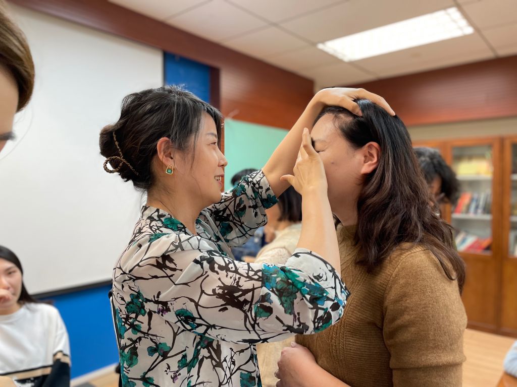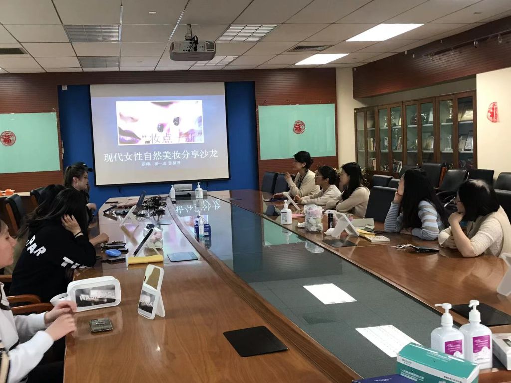 气质提升活动在轻松氛围中展开,专业化妆师结合女性教职工生活和职业特点,结合前期调研过程中,各位教工反馈的“素颜、教师气质”等多样化需求,现场为大家讲解了妆容步骤,分享了适合不同肤质的化妆产品,通过视频介绍了口红发展的历史。随后,化妆师邀请两名女教师作为模特,为她们现场上妆,帮助大家在实践中巩固所学的化妆技巧。活动现场气氛活跃,大家纷纷表示今后将多多实践,尽情展示新时代中国新女性的自信、优雅和美丽。